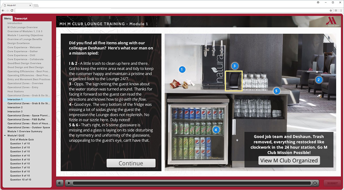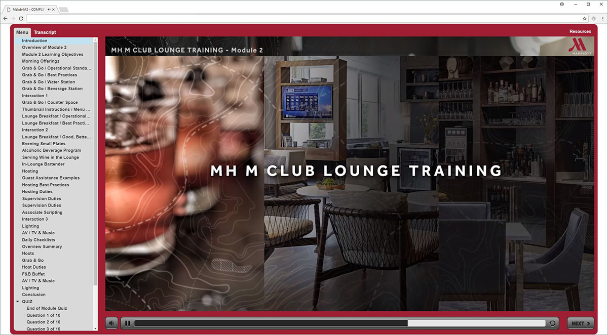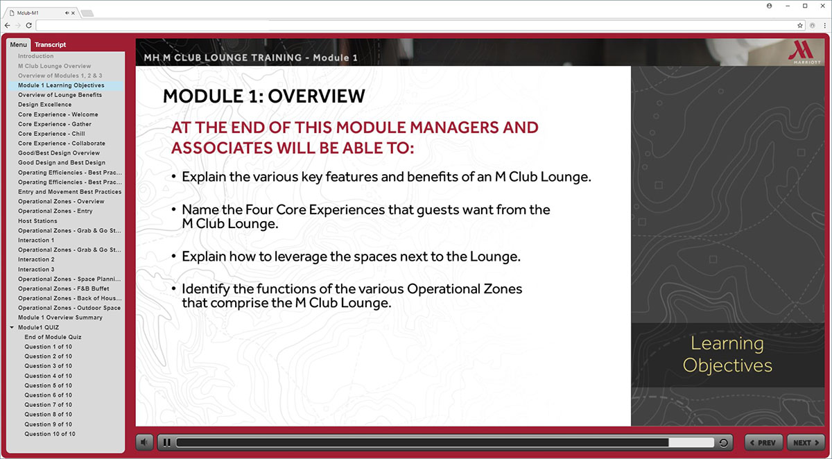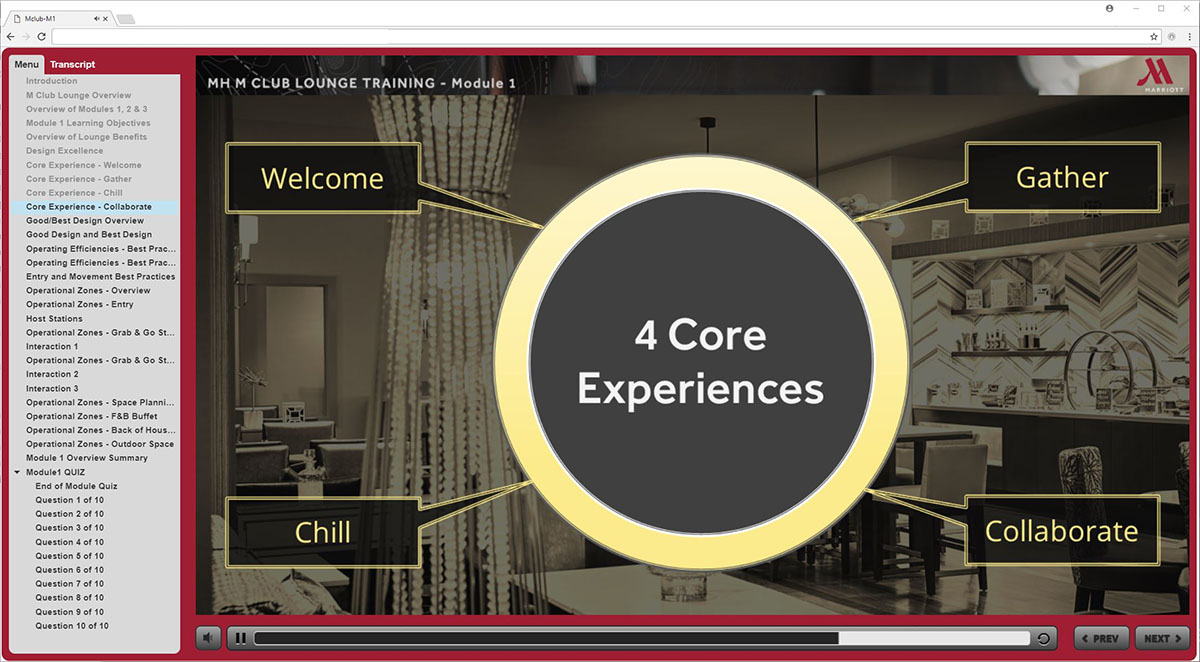 Marriott MClub is a online training program for the staff servicing Marriott’s VIP Members in the MClub Lounge.